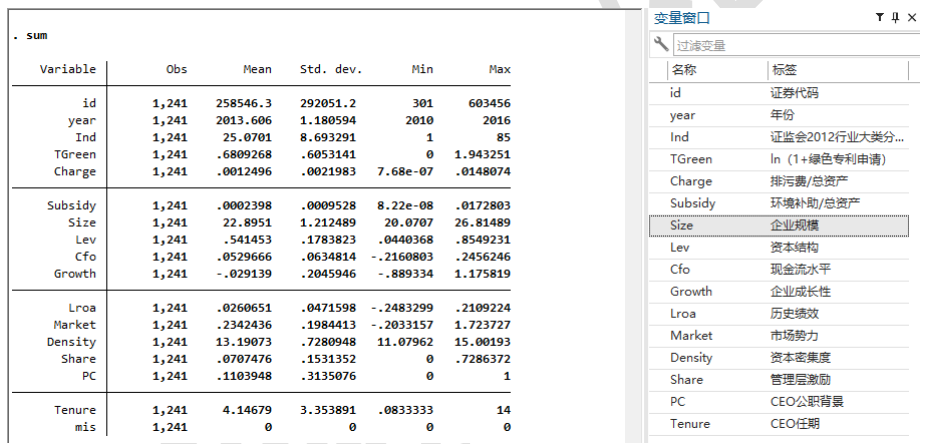 3.为了尽可能减少企业信息披露行为造成的干扰,剔除排污费和环保补助均为 0 样本;