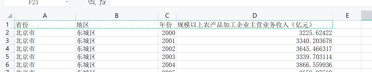 指标包括:省份、地区、年份、规模以上农产品加工企业主营业务收入(亿元)