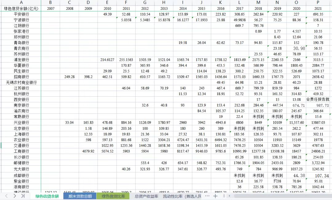 数据名称:2007-2022 年上市银行绿色信贷余额、绿色信贷比率、资本充足率等关键指标
