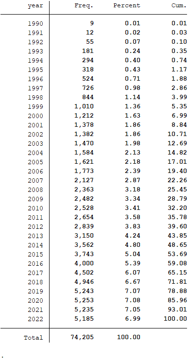 版本2:剔除版。与大多数文献相同,做了如下的处理:剔除金融行业的样本;剔除当年年末被ST、*ST或PT的上市公司;剔除公司上市之前的样本;剔除已经退市的上市公司样本