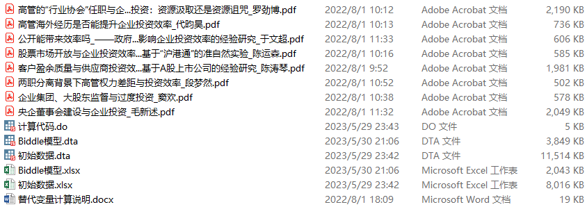 注:Invest变量有多种度量方式(7种),本人提供了计算所需的初始数据和代码,同时将每种度量方式汇总至word文档中并附有参考文献(均是A/B刊)。