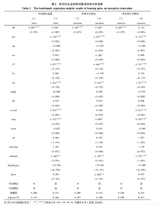 (1)基本回归检验构建如下模型检验房价对企业创新的影响