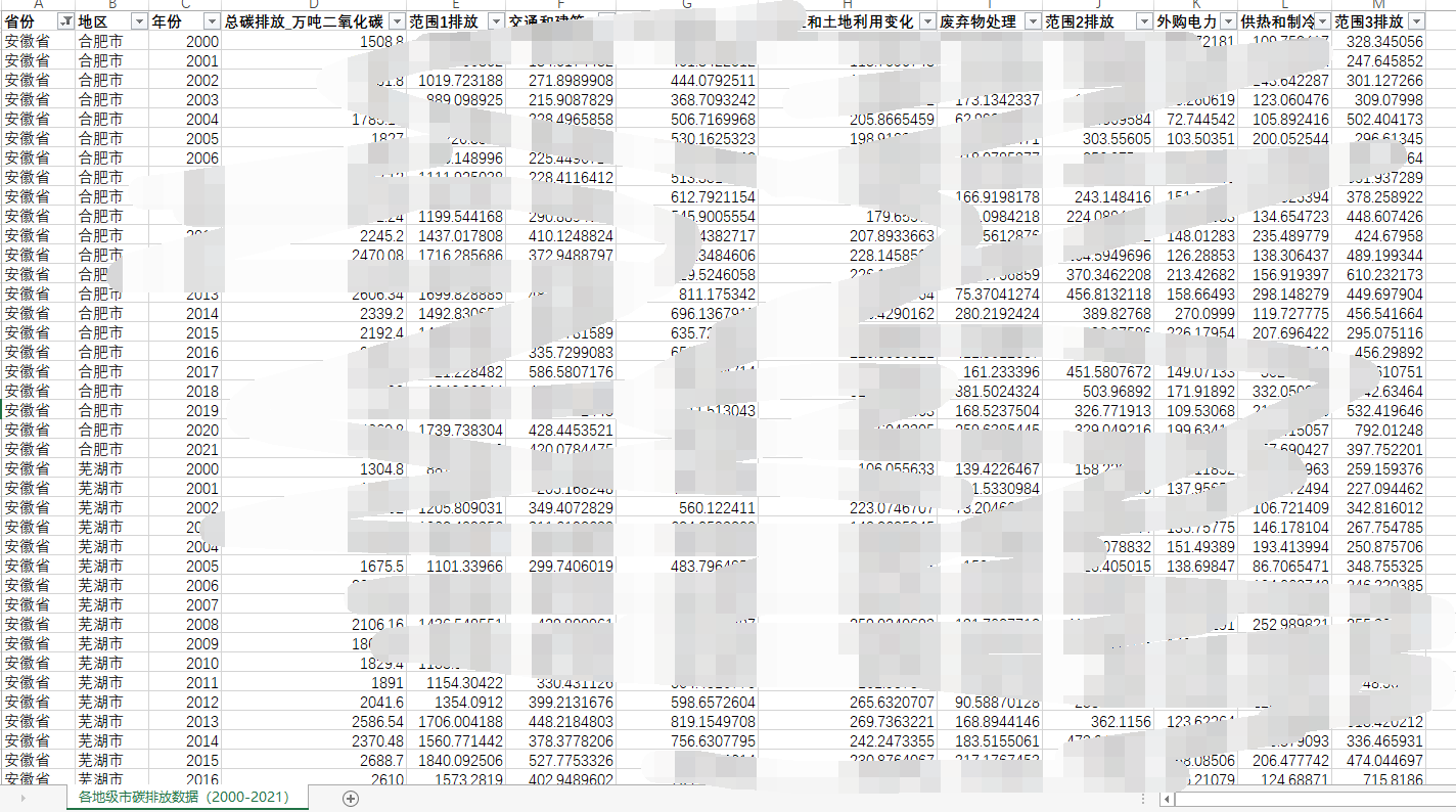 【最新】中国全国各省、地级市、区县碳排放数据合辑碳排放总量碳中和二氧化碳排放z