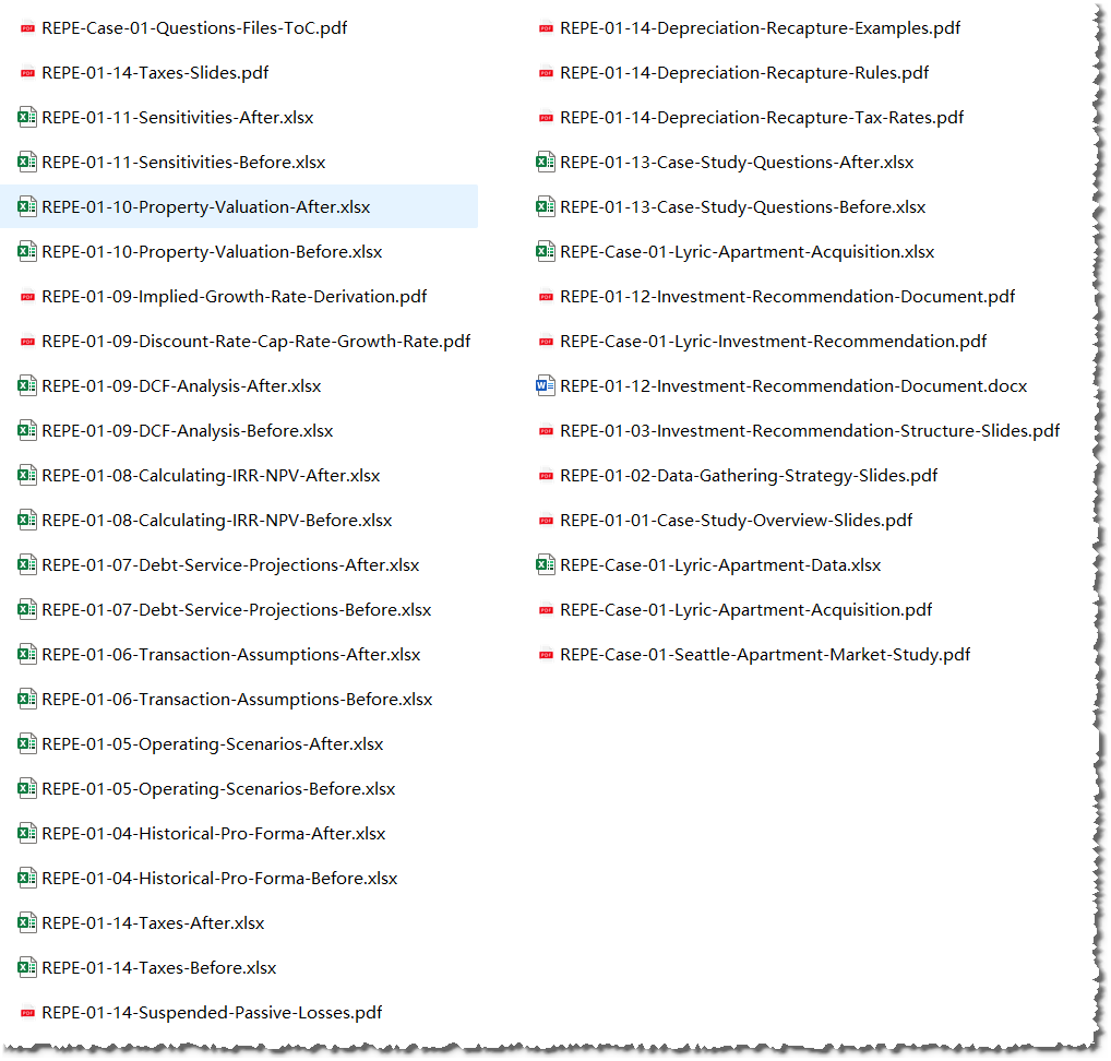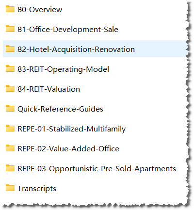 Real Estate & REIT Modeling: All Excel and PDF used in course