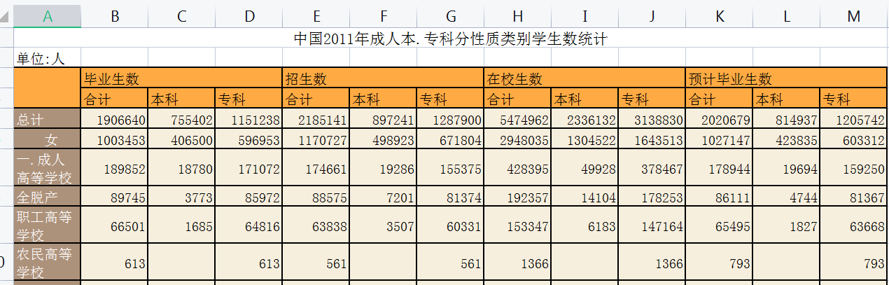 我国2011年成人本.专科分性质类别学生数统计我国2011年成人本.专科分性质类别学生数统计