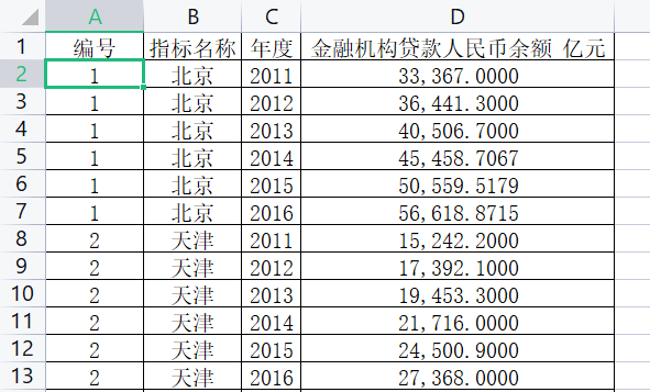 2011-2016全国31个省金融机构贷款余额.xlsx