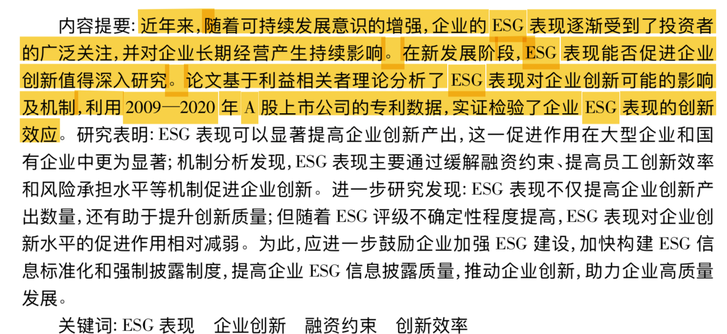 三、参考文献方先明,胡丁.企业ESG表现与创新——来自A股上市公司的证据[J].经济研究,2023,58(02):91-106.