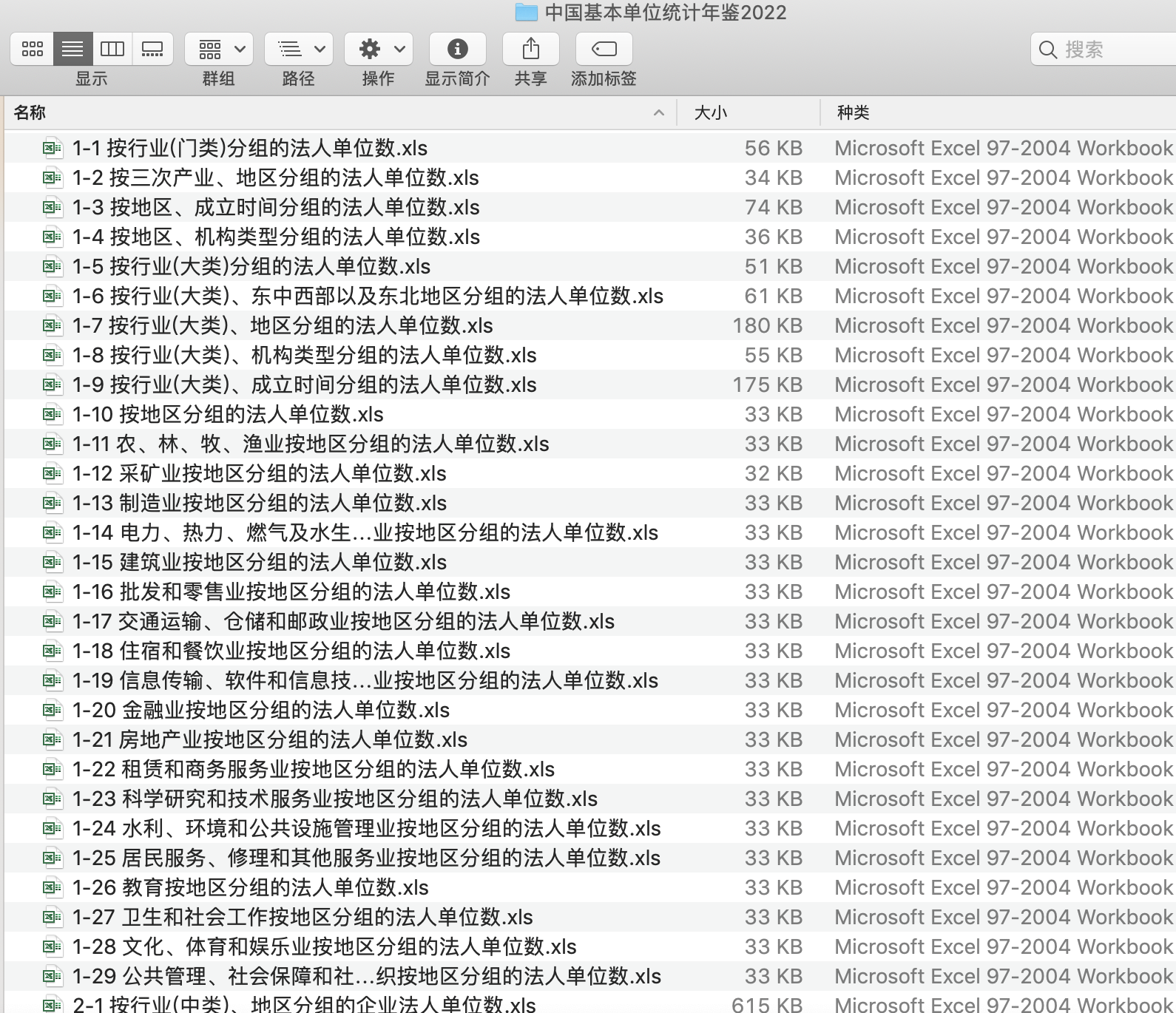 在《中国基本单位统计年鉴》中,包括全国各类法人单位按地区、国民经济行业等进行各种分组汇总而成的综合资料;以及全国各类企业法人单位按地区、国民经济行业、登记注册类型等进行各种分组汇总而成的综合资料等