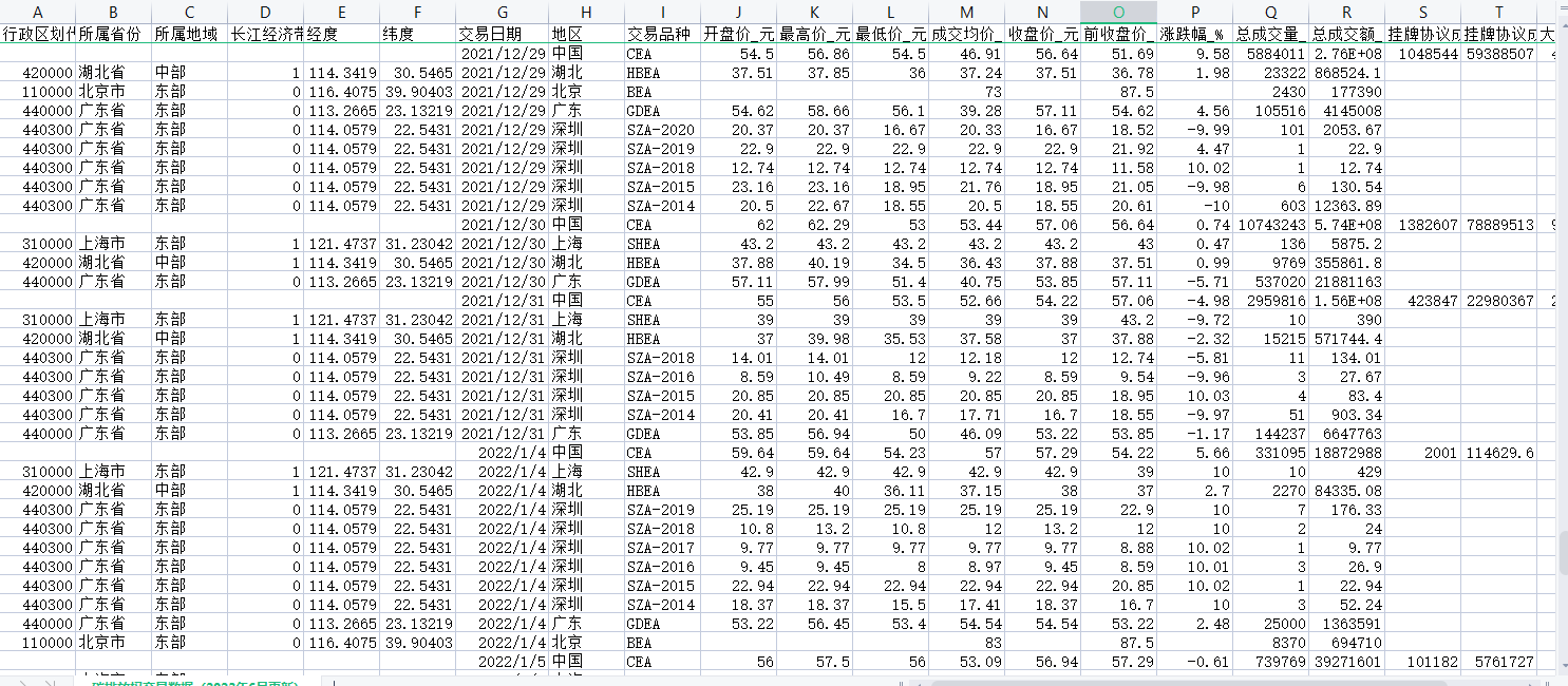 数据名称:碳排放权交易数据(2023年6月更新)