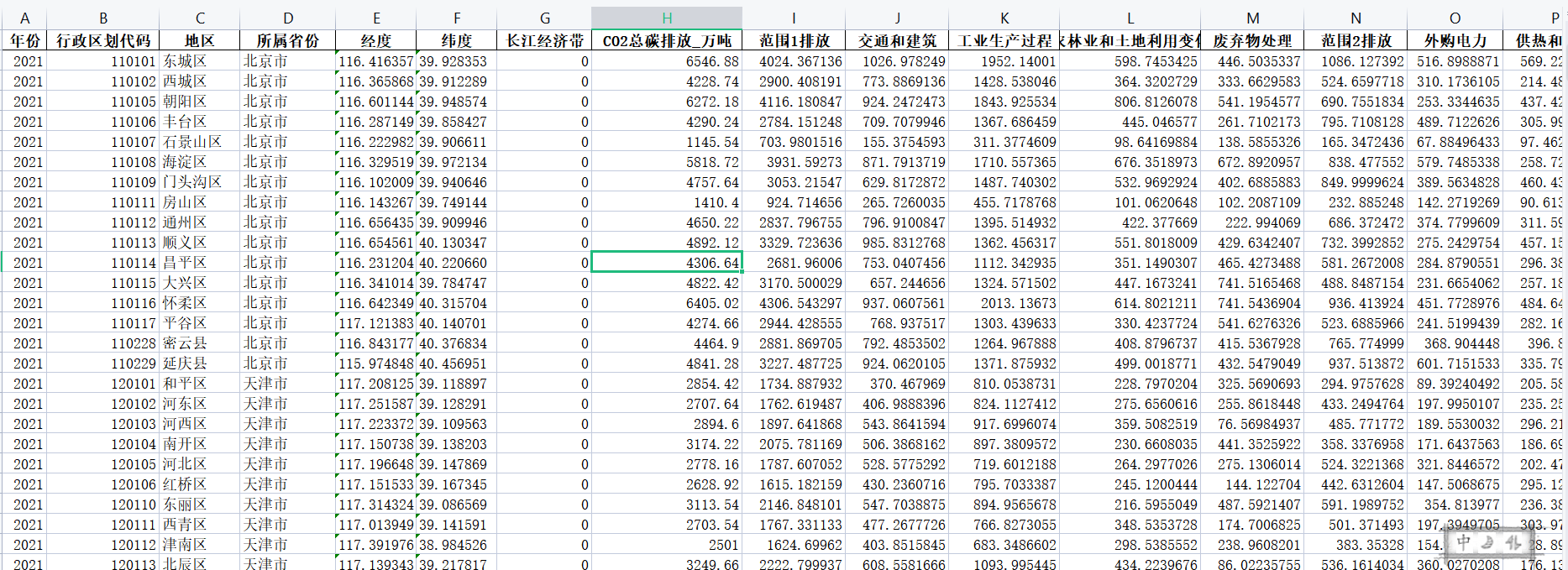 中国各地级市的碳排放数据,采用最新的范围 1、范围 2 和范围 3 核算,