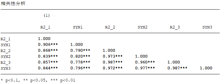 SYN1、SYN2、SYN3分别对应模型(1)、模型(2)、模型(3)计算得到的拟合优度R2进行如模型(4)的对数化处理进而计算得到的股价同步性