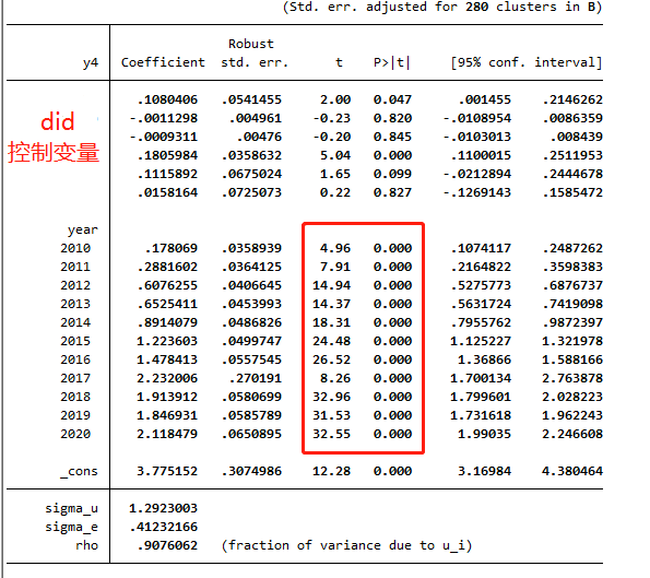 如题,跑出来的年份效应十分显著,应该如何理解这一情况?是不是哪里出错了