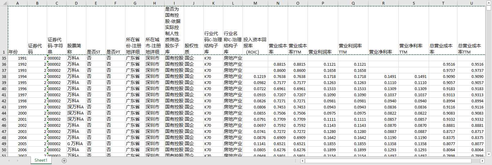 上市公司1990-2022投入资本回报率ROIC总营业成本率营业净利率营业利润率省份城市行业名称