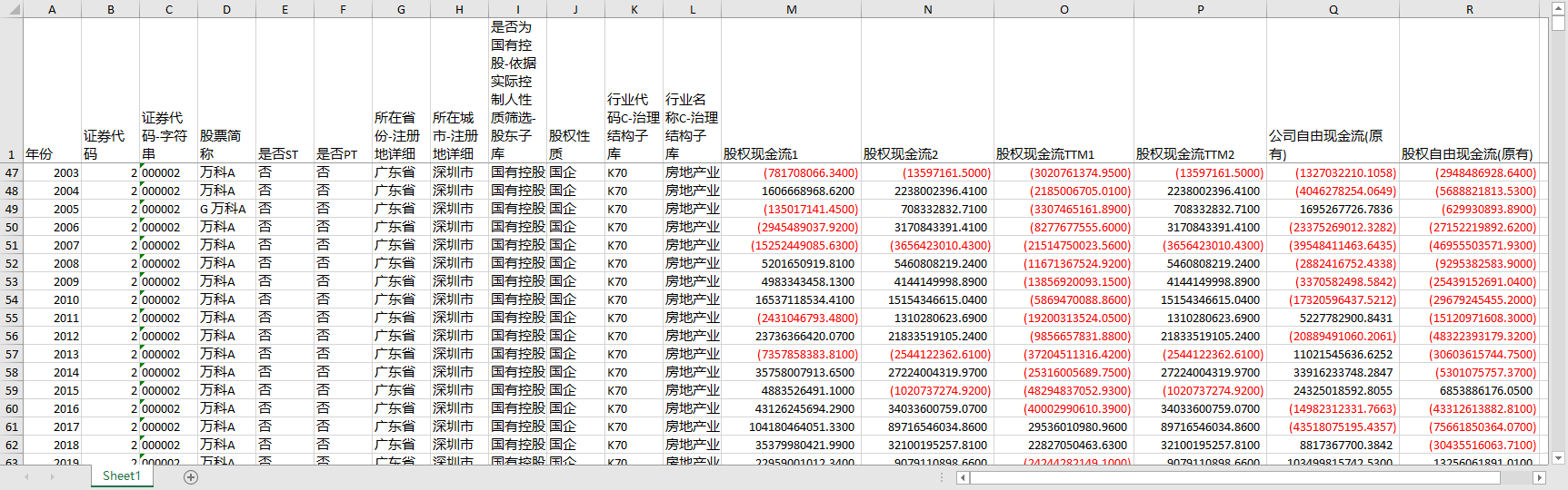 上市公司1990-2022股权现金流公司自由现金流股权自由现金流股权性质省份城市行业名称