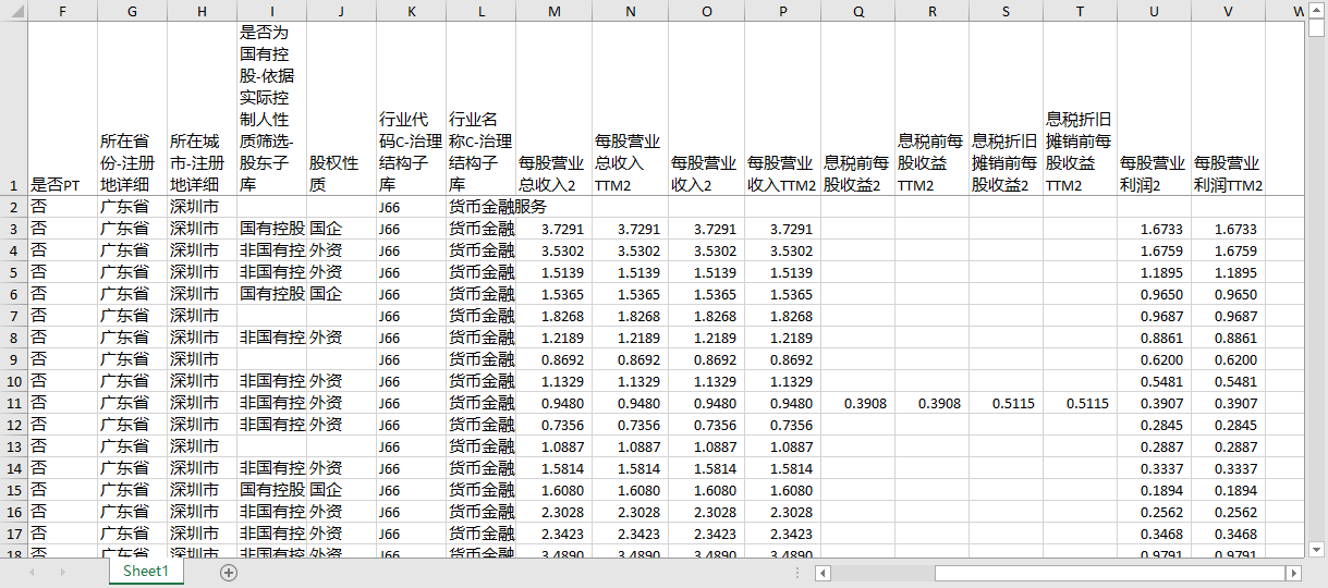 年份 证券代码 证券代码-字符串 股票简称 是否ST 是否PT 所在省份-注册地详细 所在城市-注册地详细 是否为国有控股-依据实际控制人性质筛选-股东子库 股权性质 行业代码C-治理结构子库 行业名称C-治理结构子库 每股营业总收入2 每股营业总收入TTM2 每股营业收入2 每股营业收入TTM2 息税前每股收益2 息税前每股收益TTM2 息税折旧摊销前每股收益2 息税折旧摊销前每股收益TTM2 每股营业利润2 每股营业利润TTM2