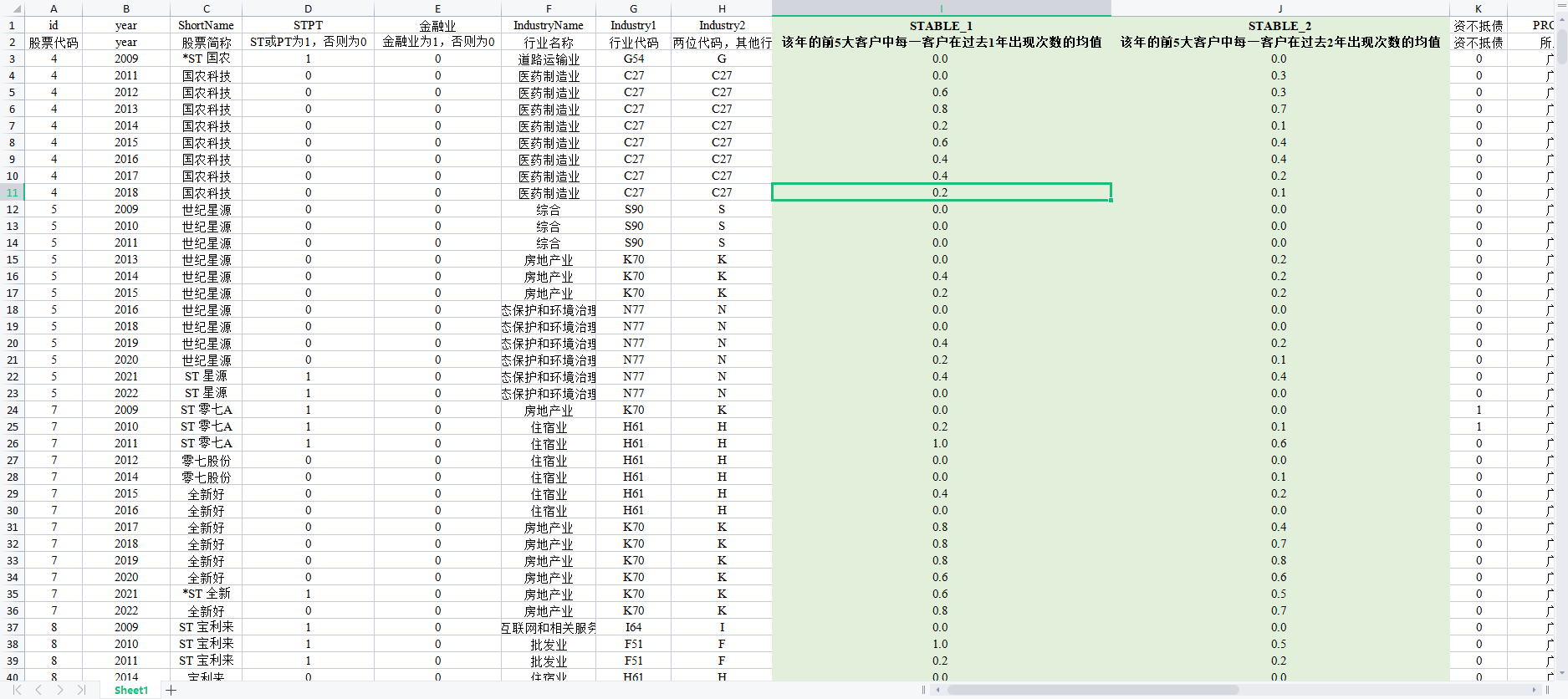 注意:如果前五大客户中一旦出现名称缺失的情况(如客户1、客户A、A公司、A客户、第一名等),则无法确定客户是否重复出现,该企业该年被剔除