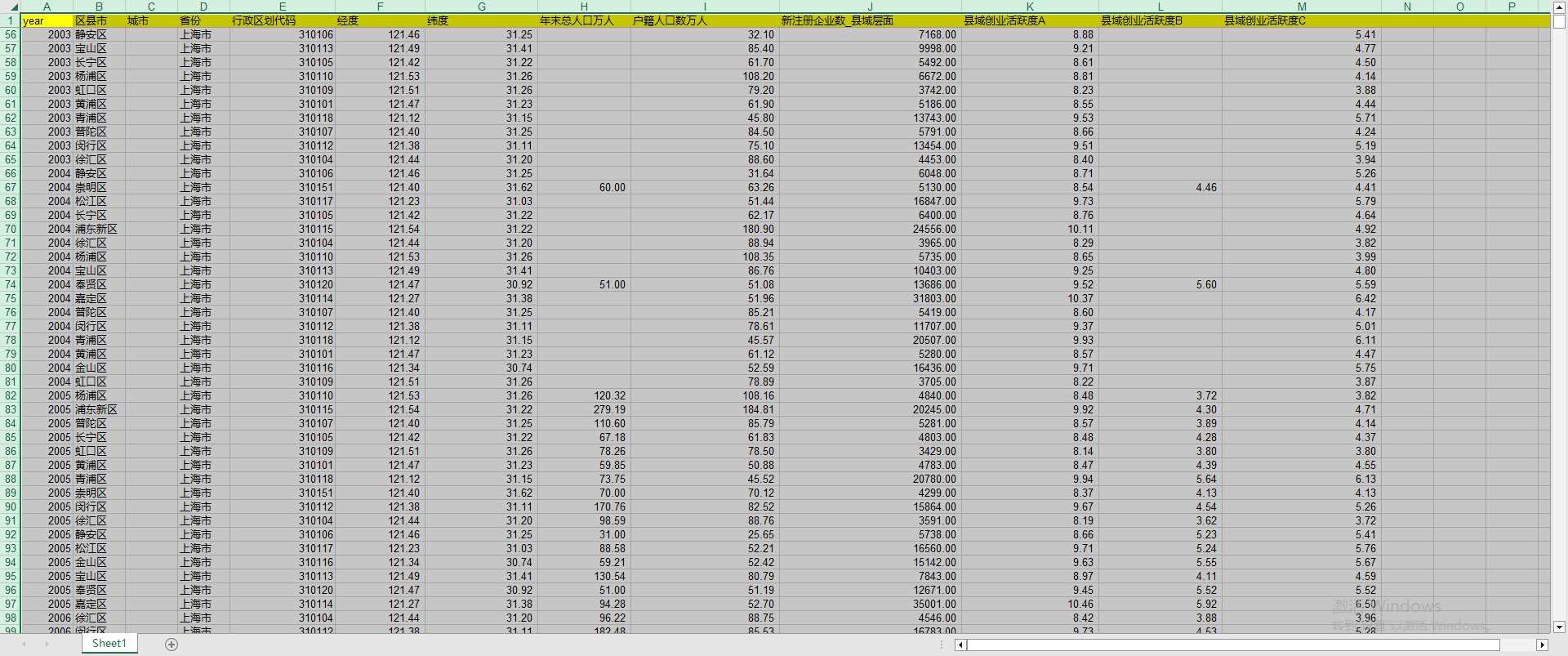amxye 发表于 2024-1-11 16:08 您好,地级市的创业活跃度数据怎么是空的?