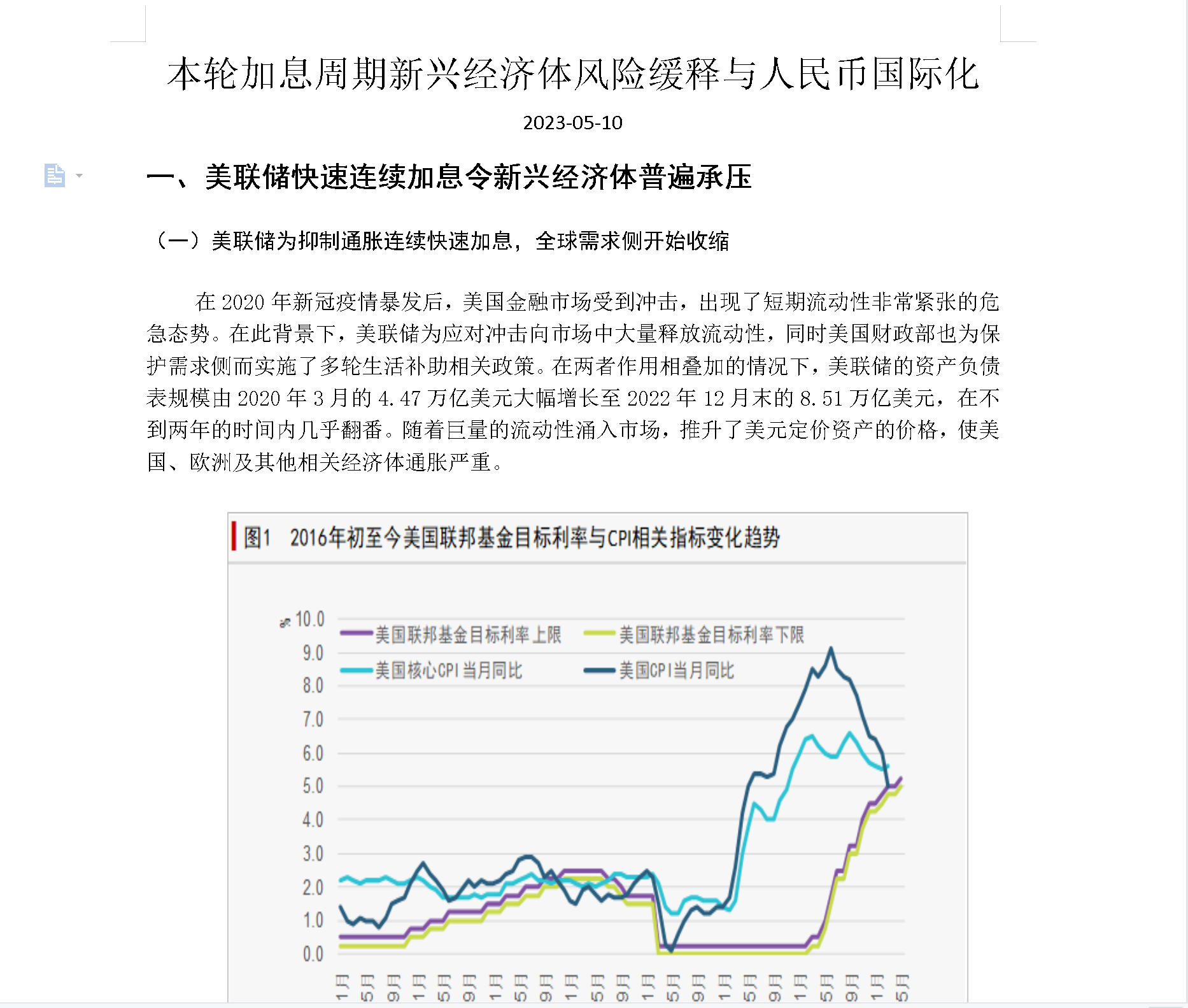 本轮加息周期新兴经济体风险缓释与人民币国际化
