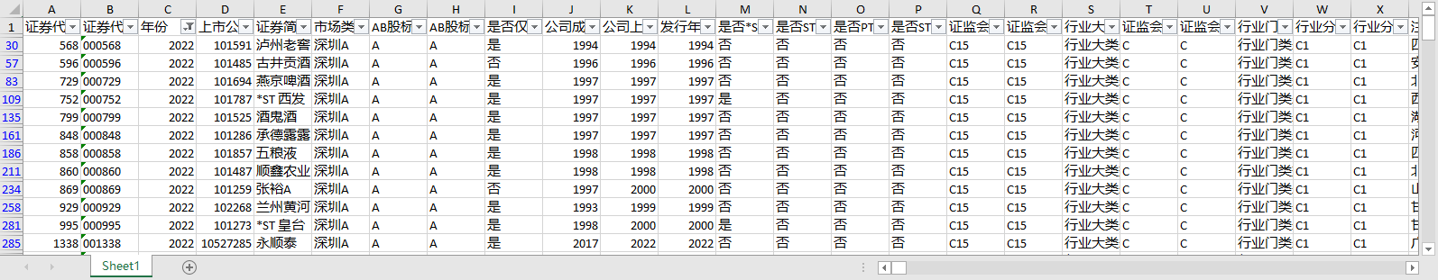 上市公司酒饮料精制茶制造业泸州老窖古井贡酒燕京啤酒酒鬼酒承德露露五粮液顺鑫农业张裕兰州黄河永顺泰洋河股份珠江啤酒百润股份天佑德酒欢乐家古越龙山中葡股份重庆啤酒泉阳泉伊力特金种子酒海南椰岛维维股份贵州茅台老白干酒惠泉啤酒青等
