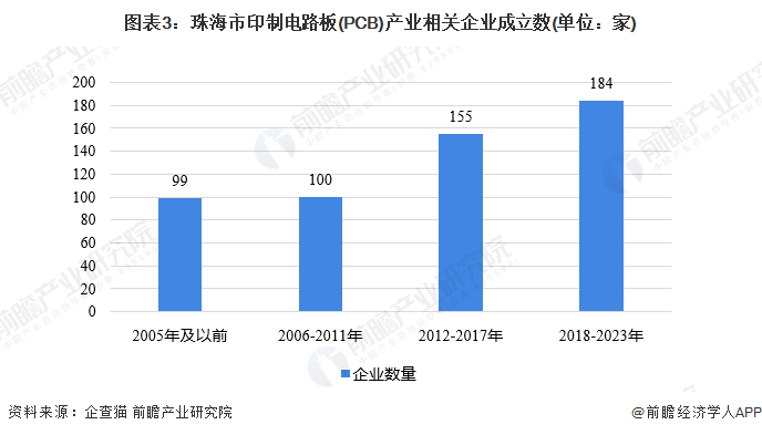 根据企查猫所查询的珠海市印制电路板(PCB)产业相关企业数量,珠海市印制电路板(PCB)相关企业共538家,其中2005年之前成立企业99家,2006-2011年期间成立的企业100家,2012-2017年期间成立企业155家,2018年至今成立企业184家,可见近五年来珠海市印制电路板(PCB)产业相关企业数量在逐渐增长。