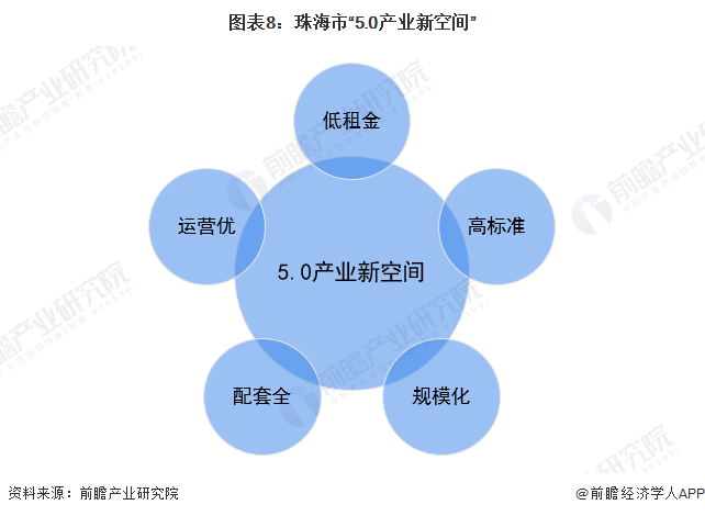 2022年4月,珠海市产业发展大会明确提出两年内珠海将统筹建设2000万平方米的高质量标准厂房——“5.0产业新空间”项目正式启动。“5.0产业新空间”具有低租金(不超过20元/月·平方米)、高标准(模块化、定制化)、规模化(不少于5万平方米)、配套全(生产与生活并重)、运营优(专业化团队)五大优势,有利于珠海市产业的聚集,加速珠海市产业集群的构建。