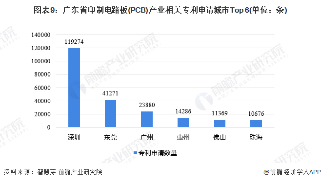 根据智慧芽所查询的广东省涉及印制电路板(PCB)产业的254279条专利中,广东省内专利申请数量排名前五的城市分别是深圳(119274条)、东莞(41271条)、广州(23880条)和惠州(11369条),珠海排名全省第六,专利数为10676条,可见其创新能力在广东省内也具有一定的发展空间,有望超过惠州和佛山。