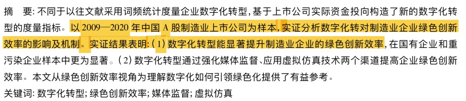 数据名称:数字化转型对制造业企业绿色创新效率的影响和机制研究