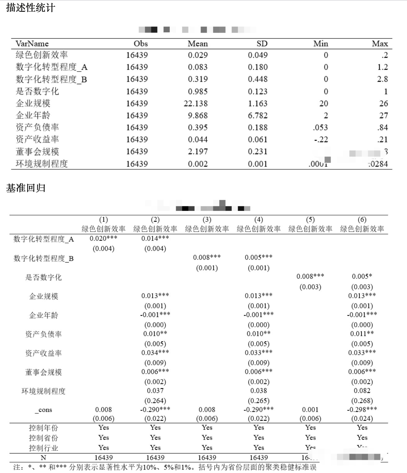 参照刘畅(2023)的做法,对来自中国软科学《数字化转型对制造业企业绿色创新效率的影响和机制研究》一文中的基准回归部分进行复刻。