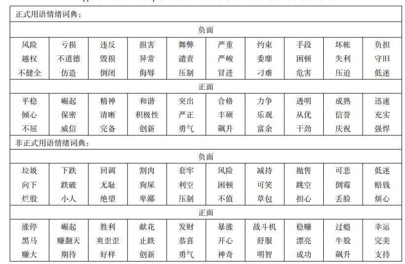 本文分享两篇有代表性的金融领域中文情绪词典的构建方法及其词典数据:
