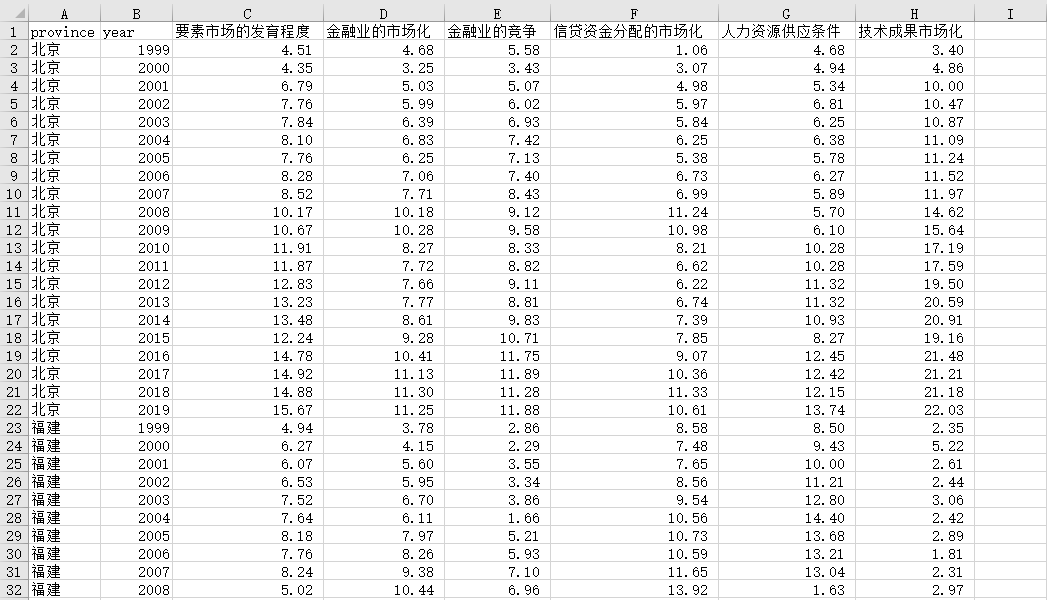 要素市场的发育程度原始数据:1999-2019年要素市场的发育程度原始数据