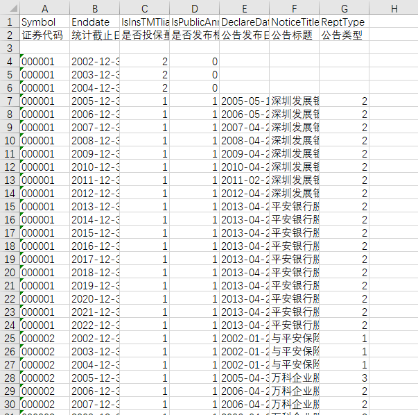 ReptType [公告类型] - 1=临时公告;2=董事会公告;3=股东大会公告;4=年度报告