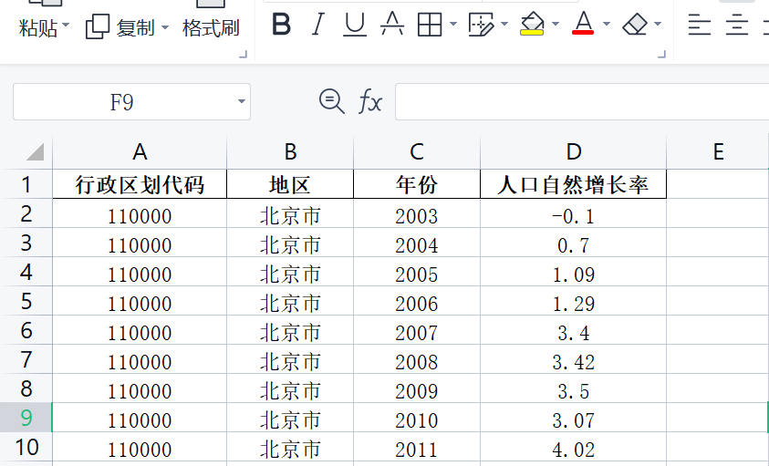 指标包括:行政区划代码 地区 年份 人口自然增长率