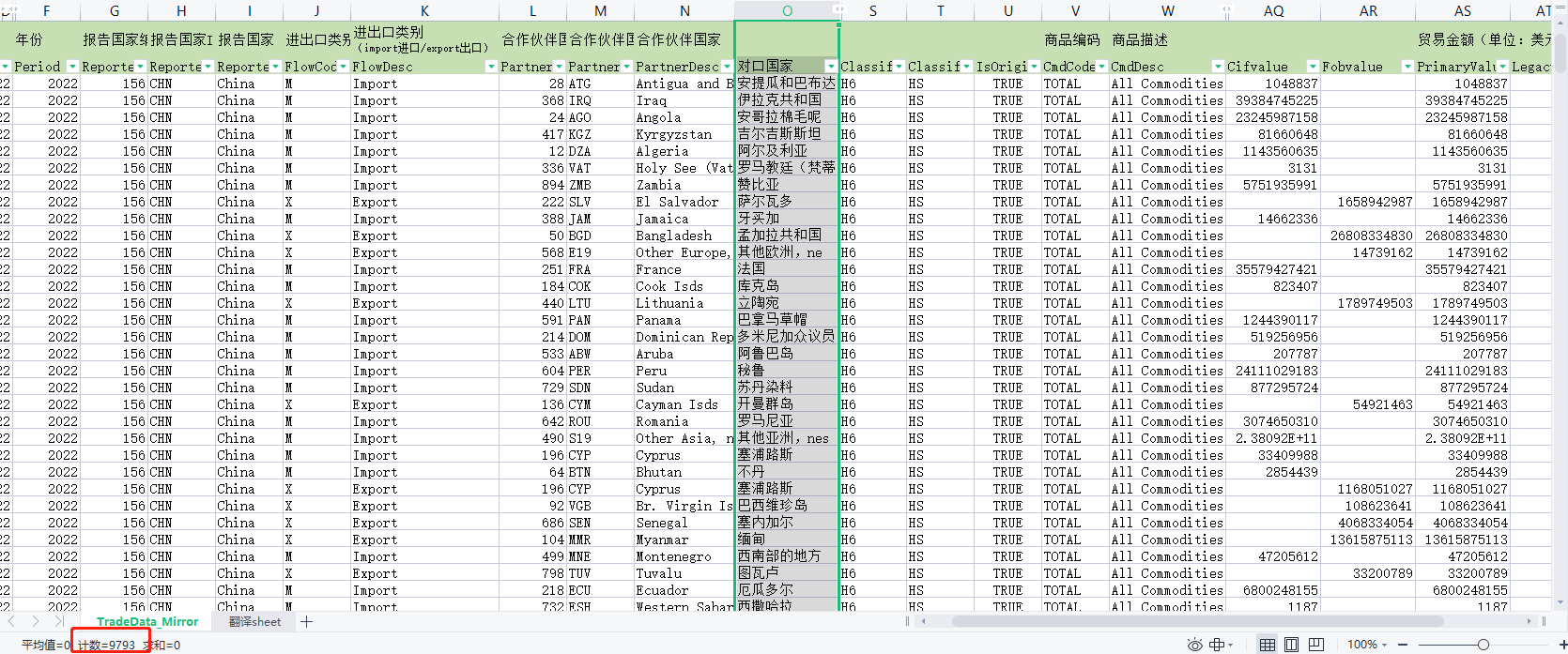 数据名称:中国对全球世界各国225个国家地区商品贸易进出口数据(中文翻译版)