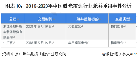 由于国内激光雷达行业尚处于发展阶段,因此同业间发生兼并的事件较少,目前兼并重组的类型主要为中游企业横向整合扩大规模。