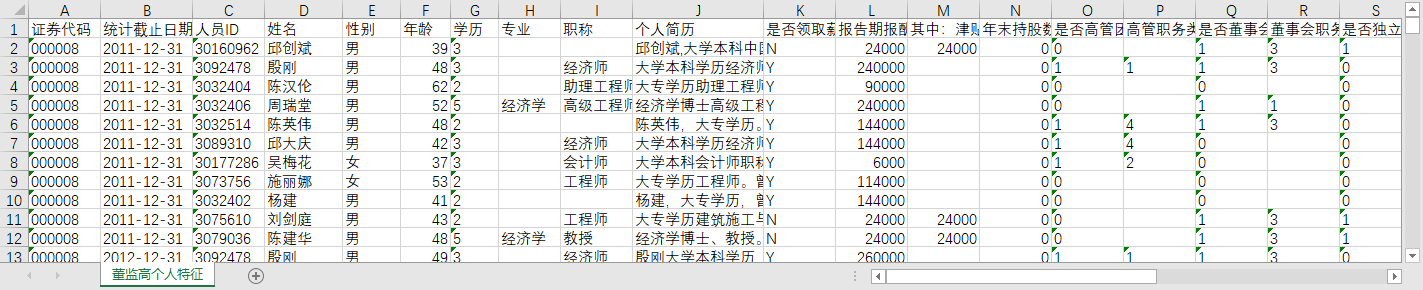 制造业上市公司董监高个人特征数据2011-2022监事独立兼任董事长CEO职业海外学术金融背景