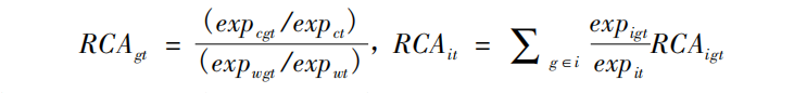 [size=13.7143px]RCAgt =[size=10.2857pt]( EXP[size=10.2857pt]cgt/EXPct)/(EXPwgt/EXPwt)