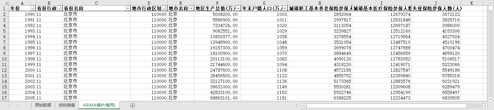 excel数据文件包原始数据(由于多年度指标不同存在缺失值)、线性插值、ARIMA填补三个版本,提供您参考使用。