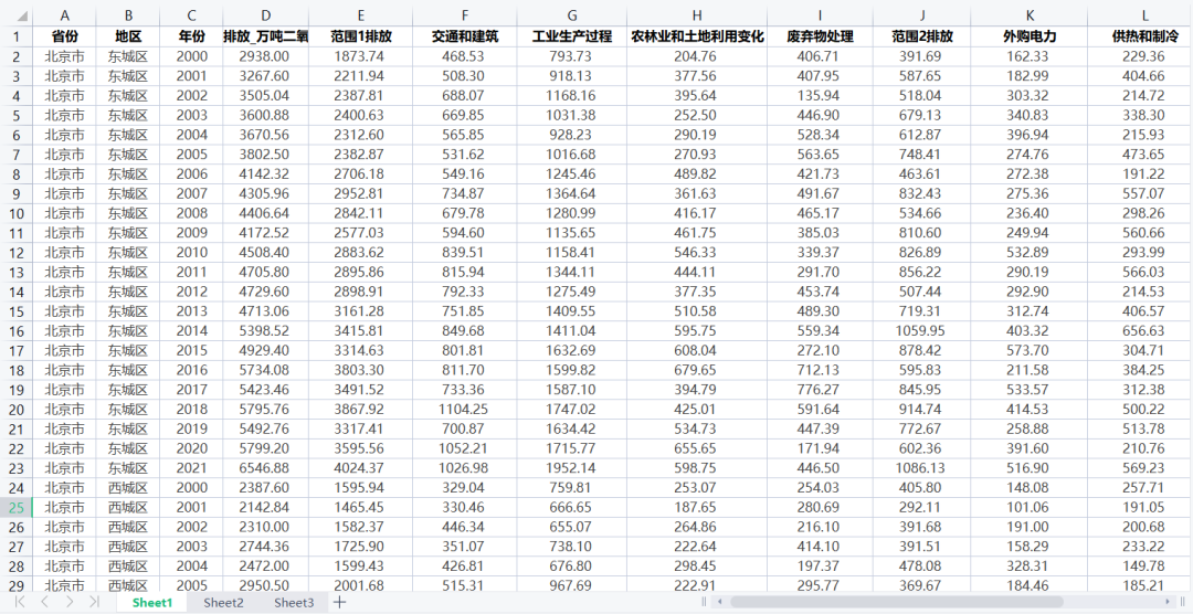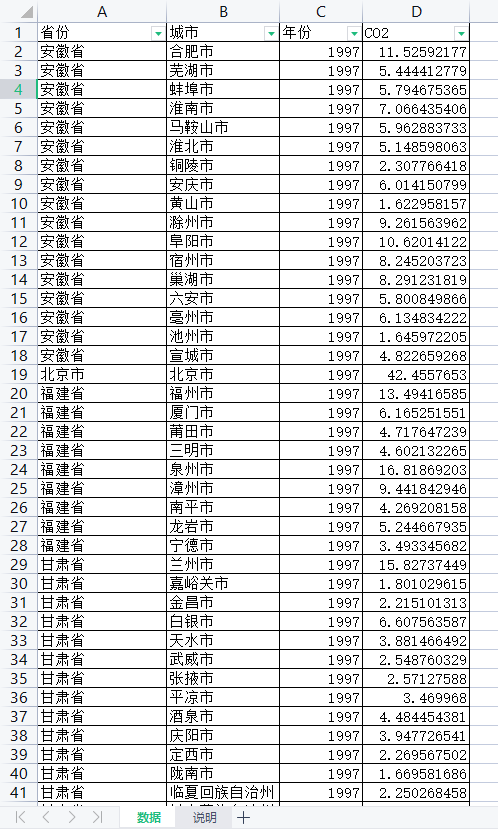 二、中国地级市碳排放数据(表观二氧化碳)
