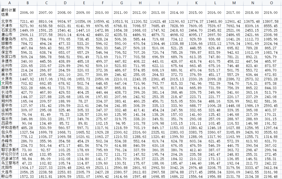 三、280多个地级市碳排放及计算过程