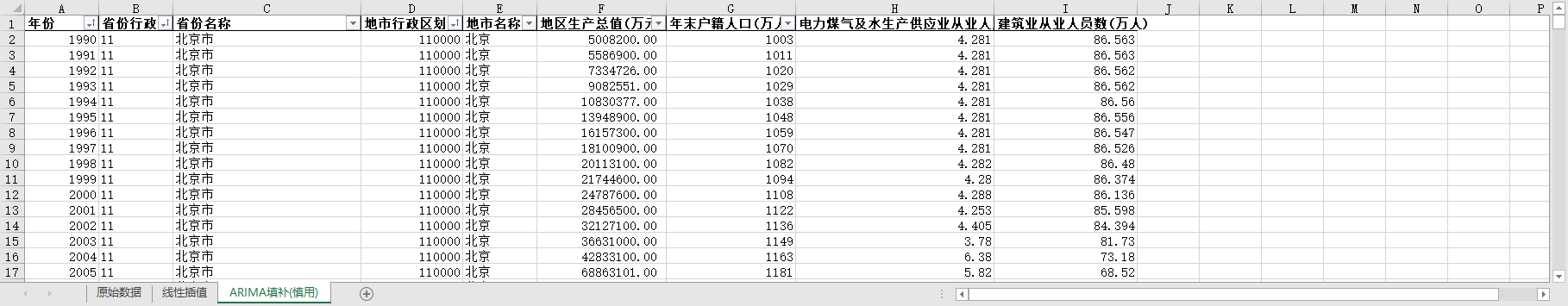 excel数据文件包原始数据(由于多年度指标不同存在缺失值)、线性插值、ARIMA填补三个版本,提供您参考使用。