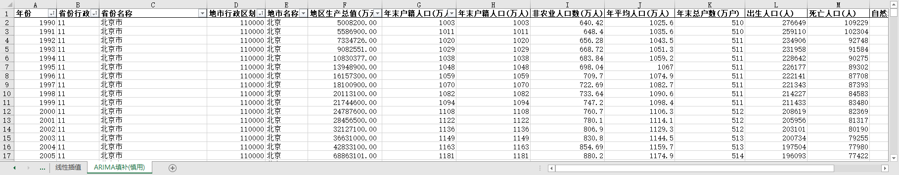 ARIMA填补。基于ARIMA模型,利用同一地区的时间序列数据,对缺失值进行预测填补。