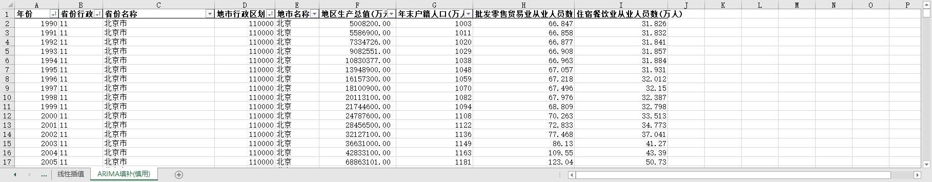 ARIMA填补。基于ARIMA模型,利用同一地区的时间序列数据,对缺失值进行预测填补。