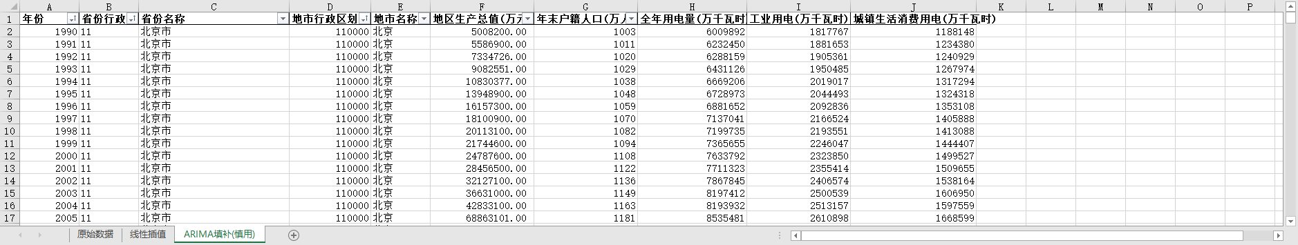 ARIMA填补。基于ARIMA模型,利用同一地区的时间序列数据,对缺失值进行预测填补。