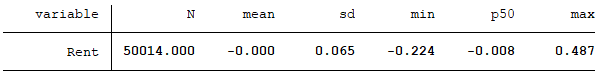 对以上模型中连续型变量按照1%与99%的分位数进行Winsorize缩尾处理,回归取得的残差项即为超额管理费用,记为Rent,作为企业寻租程度的代理变量。