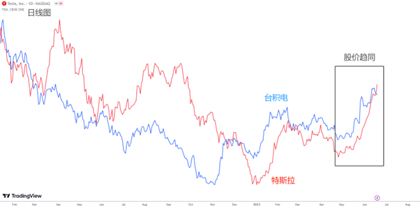 Tesla vs TSM 股价日线图