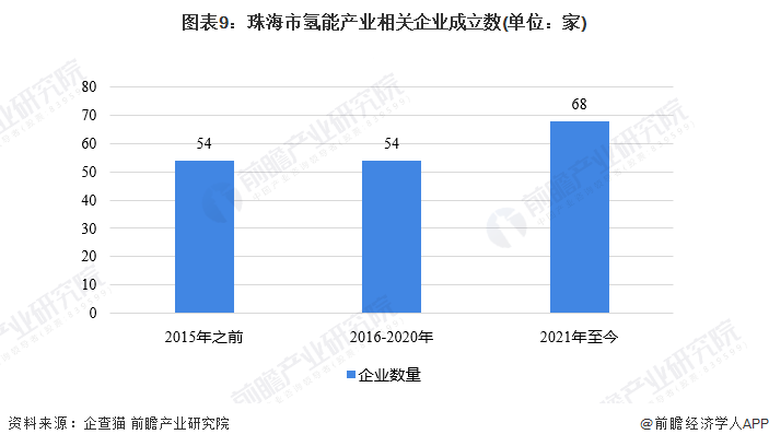 根据企查猫所查询的珠海市氢能产业相关企业,2015年之前成立的企业有54家,2016-2020年期间成立的企业54家,2021至今成立企业68家,可见近两年来珠海市氢能产业相关企业数量迅速增长。