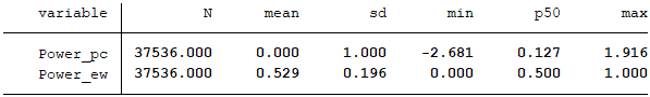 第二,通过对以上八个虚拟变量直接相加求平均值(Power_ew)①,最终取值介于[0,1]之间。