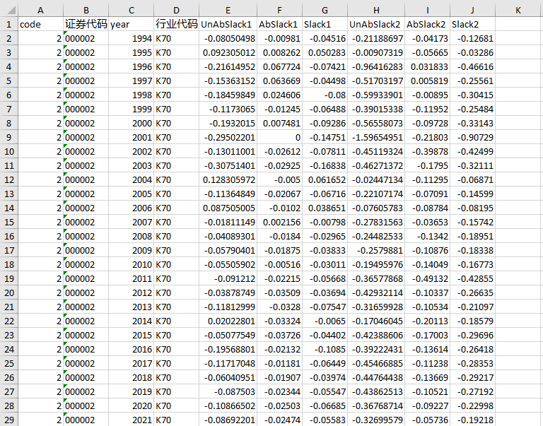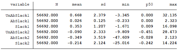 未吸收的冗余(UnAbSlack2),用企业速动比例扣除该指标行业均值来度量。