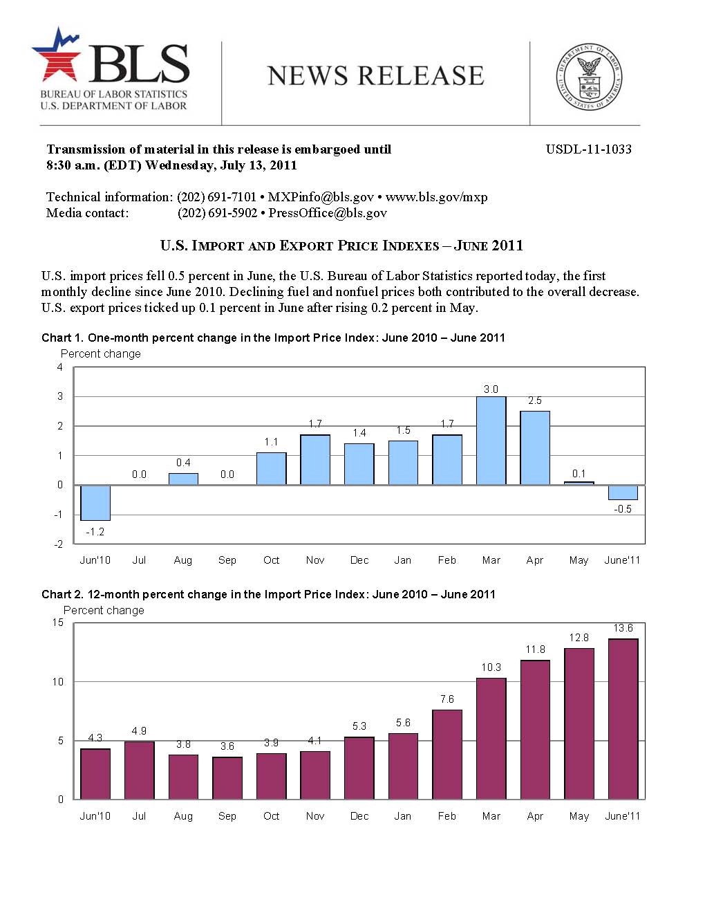 U.S. IMPORT AND EXPORT PRICE INDEXES – JUNE 2011
