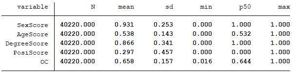 OC=1/4 × (SexScore + AgeScore + DegreeScore + PosiScore)